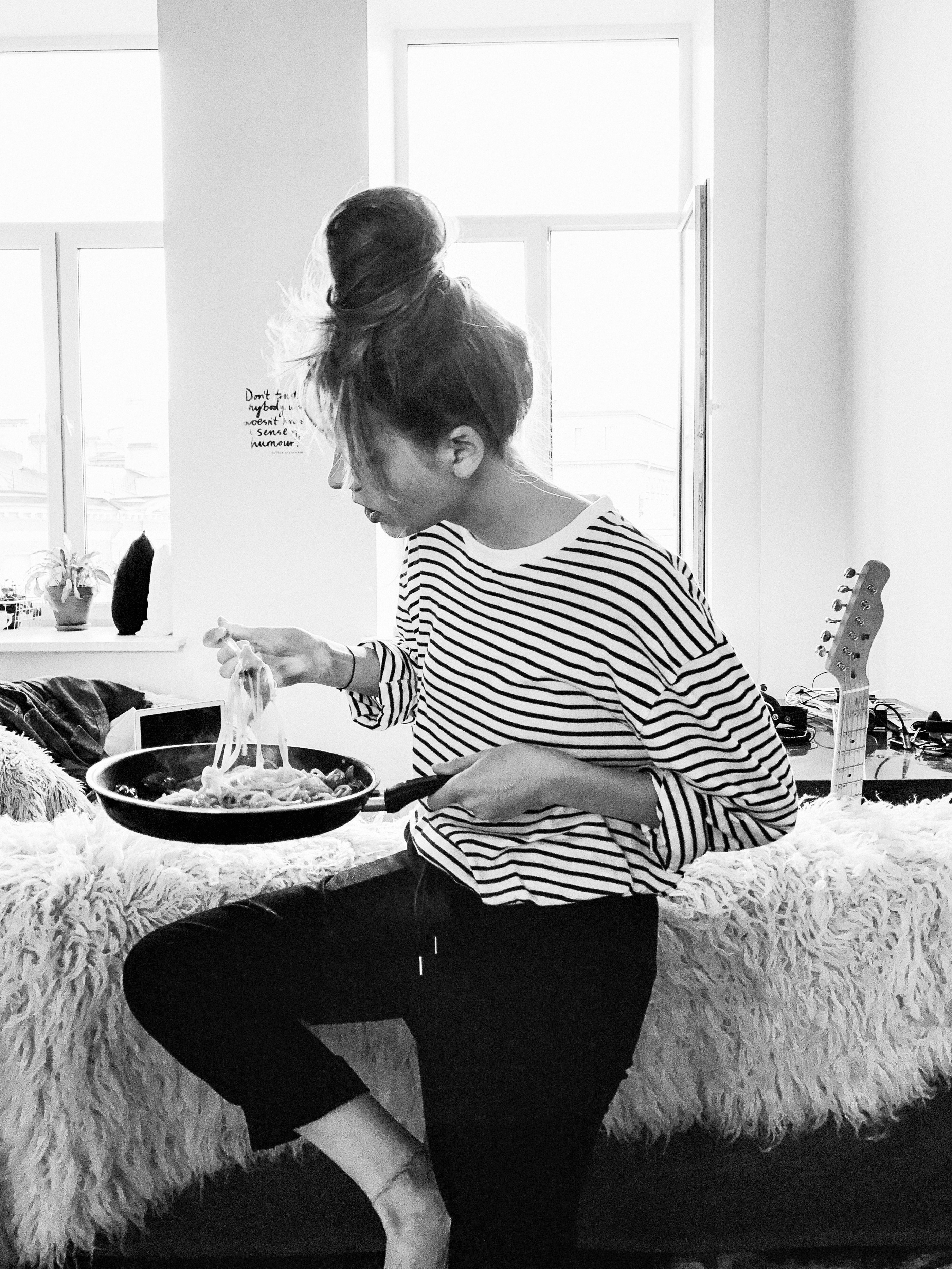 Previous Image Next Image woman-in-black-and-white-striped-shirt-eating-food-from-pot-daria-shevtsova-2